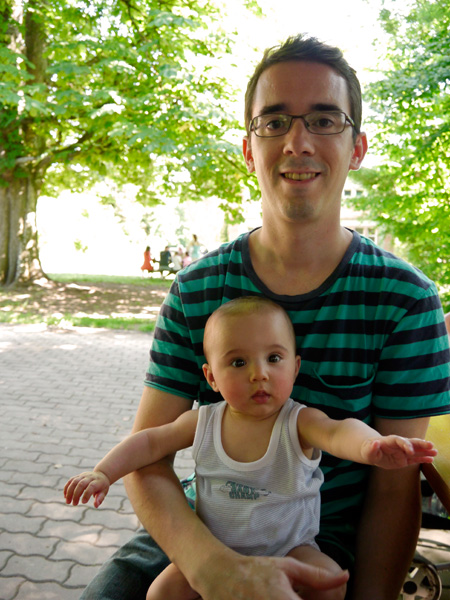 Bonne fête papa! C’est ce qu’aurait dit Lisa si elle savait parler! ça ne l’a pas empêché d’offrir son premier cadeau à Brice avec son plus beau sourire ( le sourire grimace qu’elle nous fait depuis quelques semaines et qui nous fait craquer). Pour continuer cette belle journée et rester au frais, nous sommes allé nous promener à la petite Camargue Alsacienne à Saint-Louis.