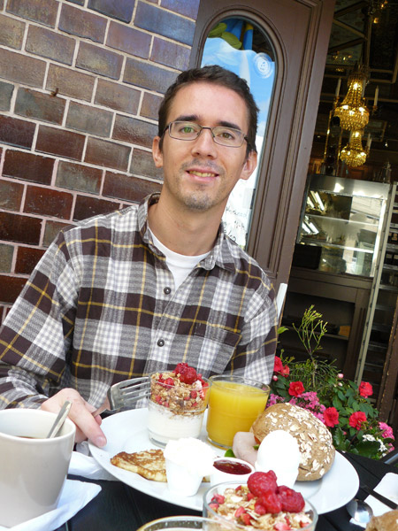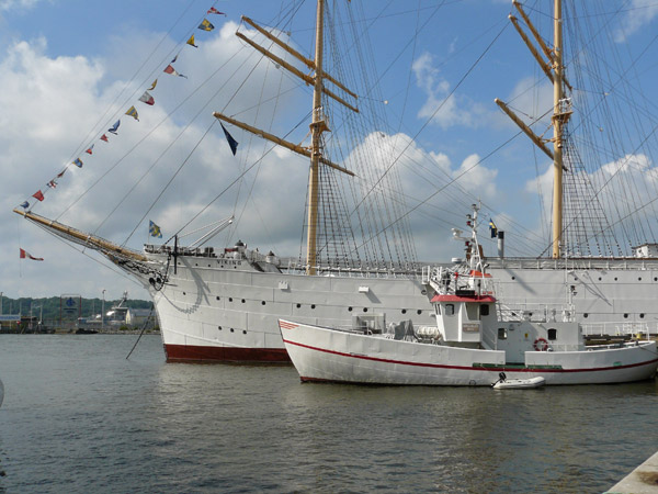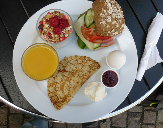 une jolie ville ! avec de beaux gréements anciens et il a l’air de faire assez beau temps.moi aussi j’aurais bien aimer ce petit déjeuner copieux !!!