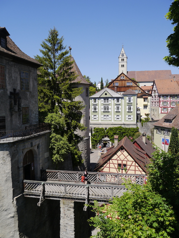 Le lendemain, nous avons fait une petite traversée en bateau (sous l’oeil d’un zeppelin qui survolait le lac de long en large) pour aller à Mersburg. La aussi, une petite ville à 2 facettes : la ville haute avec vieilles bâtisses et châteaux, la ville basse à l’ambiance côtière.