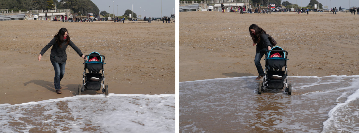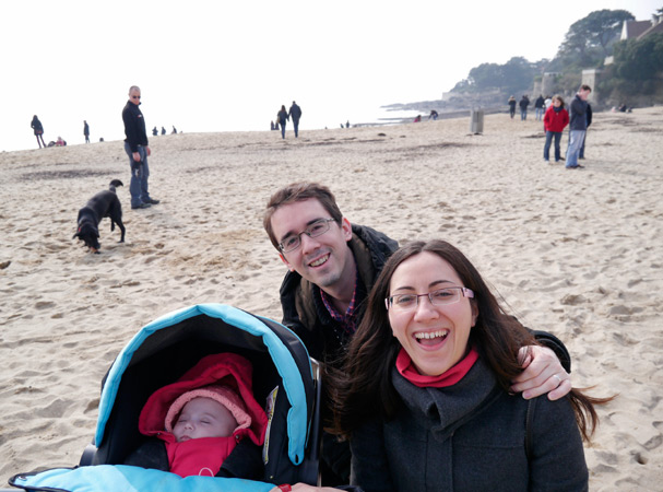 Nous avons été accueillis comme des rois par les Nonos. Ils nous ont fait plaisir avec leur makis, bagels et autres resto de poisson. Ils nous ont emmené à Pornic, c’était la première fois que Lisa été à l’océan; elle a faillit être emportée par une vague, heureusement que j’étais là pour la sauver comme en attestent ces photos.